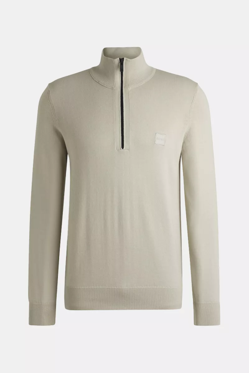 De Kanobix_S sweater van BOSS is een mooie casual sweater. Hij is heerlijk zacht en kan aan de bovenkant gesloten worden met een rits. Het BOSS logo staat op de borst.