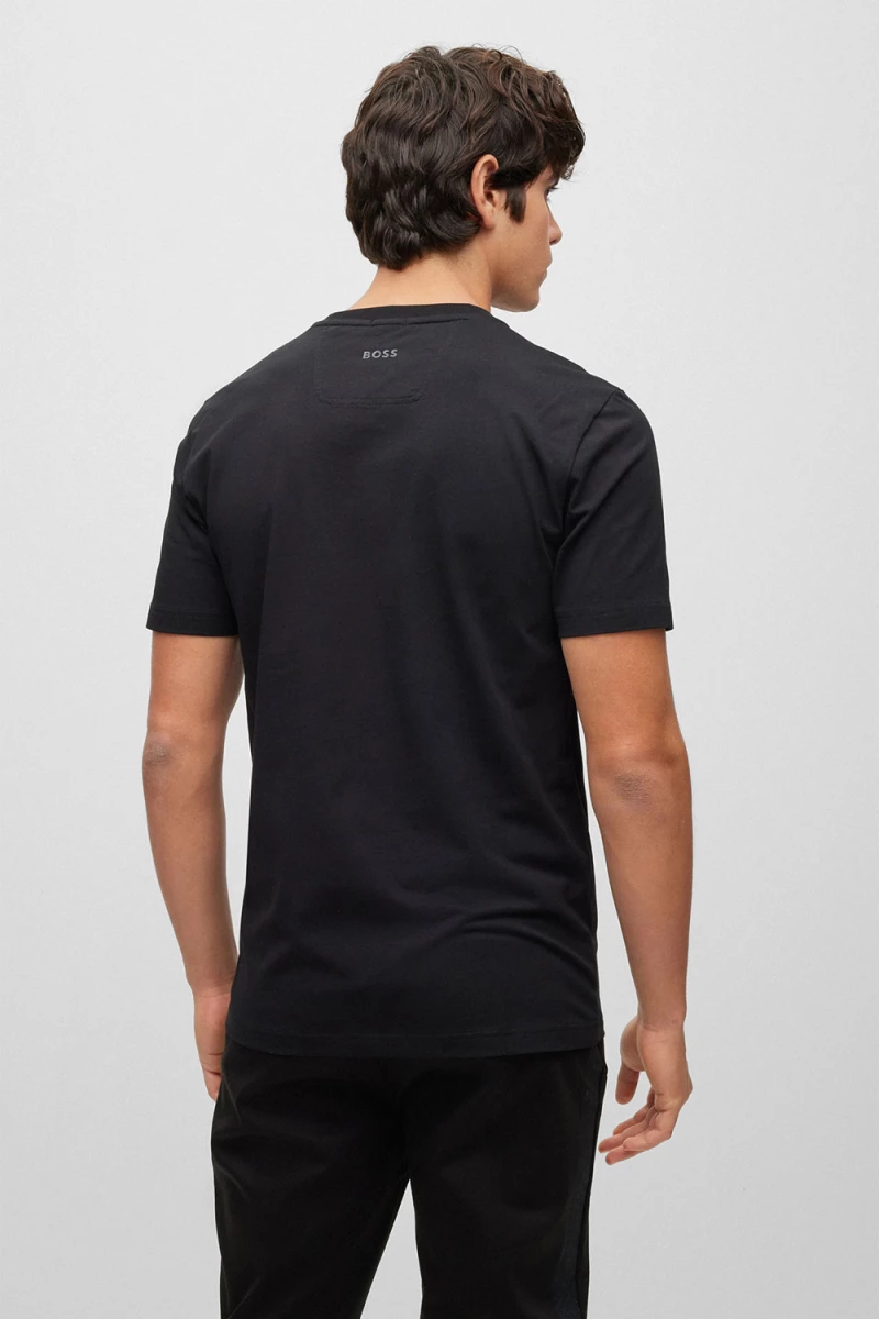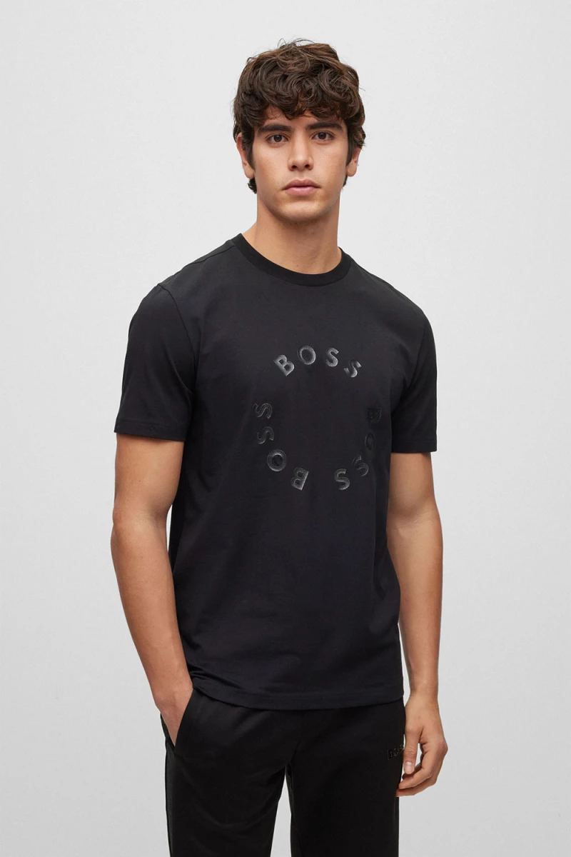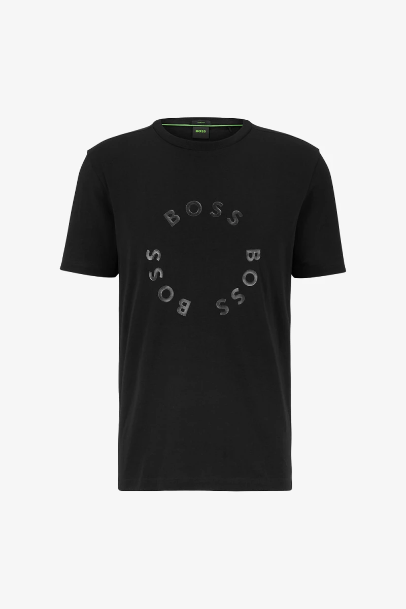 Deze Tee T-shirt van BOSS is een stretchjersey van Boss Menswear. Het is een regular fit en is gemaakt van katoen en elastaan. Het T-shirt heeft een standaardlengte. Het shirt heeft een groot boss logo op de voorzijde. Met dit shirt ben je helemaal klaar voor de zomer!