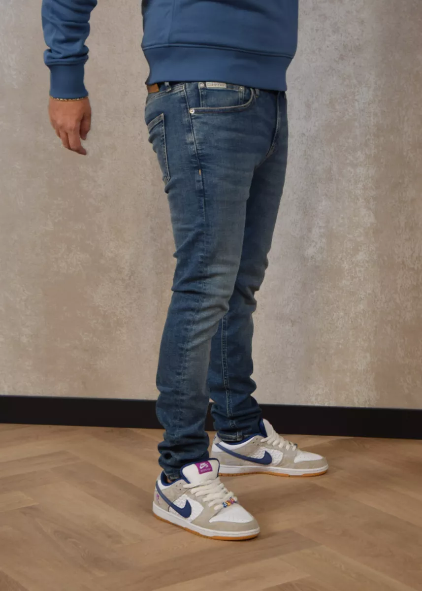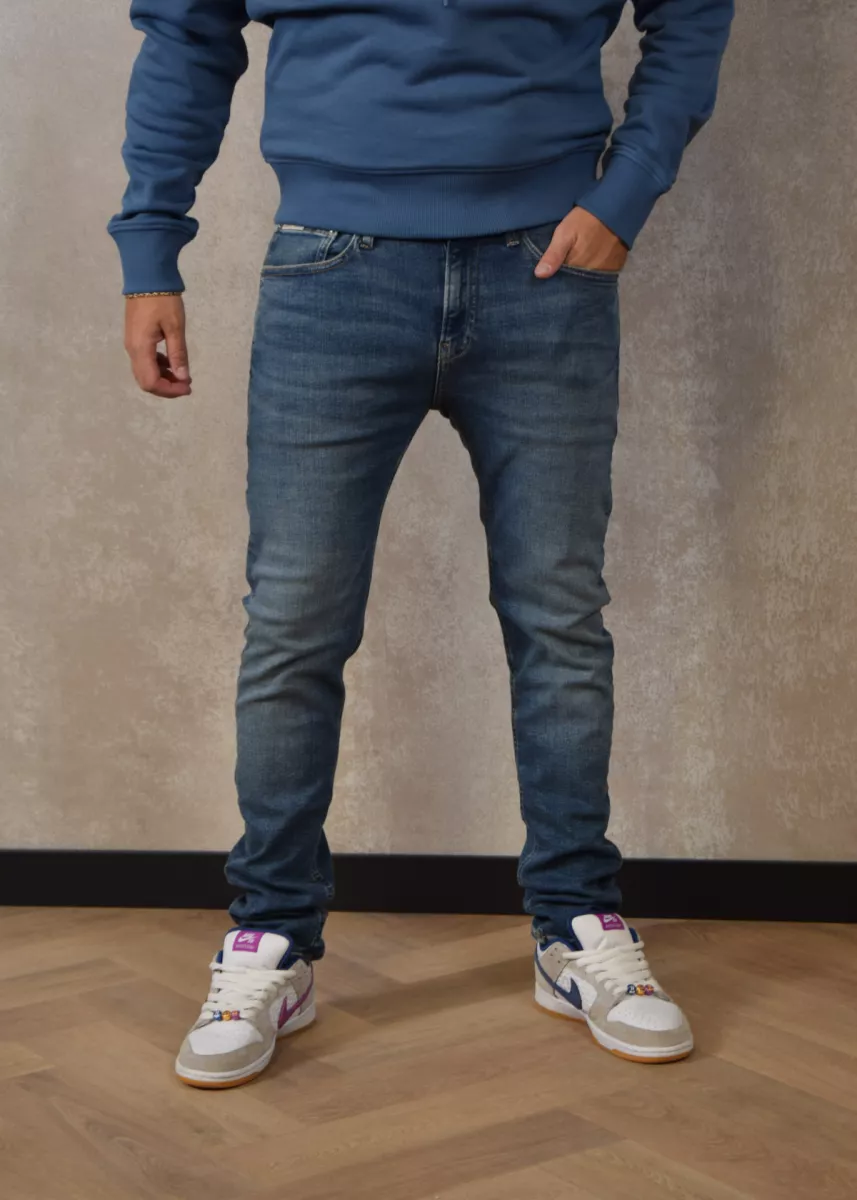 De Skinny Fit jeans van Calvin Klein Jeans is een mooie jeans die strak om de benen valt. De broek is een low raise jeans en heeft een faded look. De jeans heeft veel stretch en wordt gesloten met een knoop en rits.