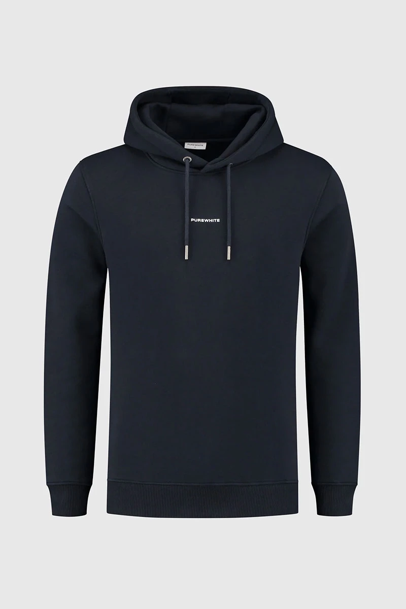 Deze hoodie komt uit de essential collectie van Purewhite. De trui is gemaakt van katoen en polyester en heeft een zachte afwerking. Het logo van Purewhite is op de borst geplaatst en op de achterkant vind je de bekende Purewhite triangle backprint.