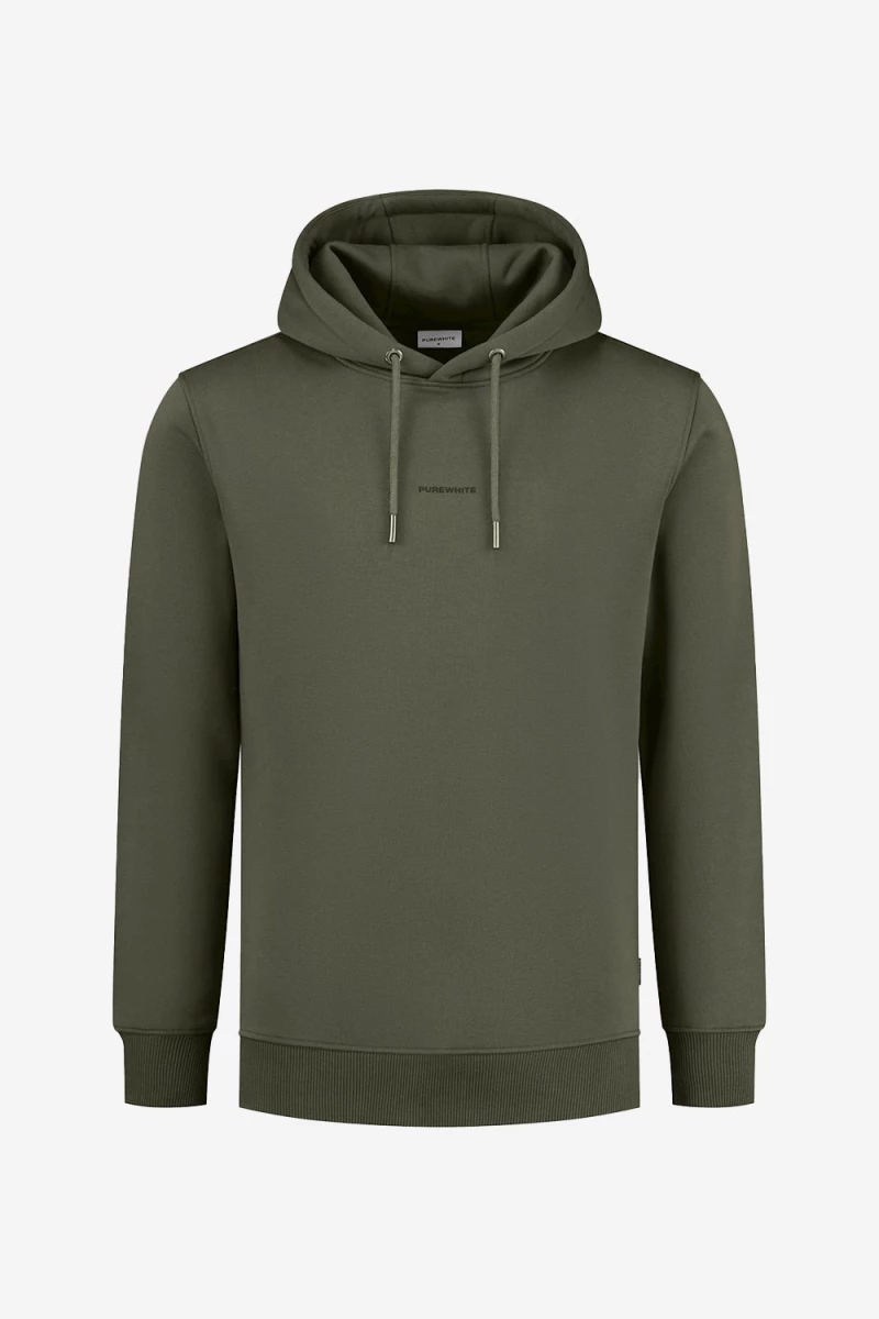Deze hoodie komt uit de essential collectie van Purewhite. De trui is gemaakt van katoen en polyester en heeft een zachte afwerking. Het logo van Purewhite is op de borst geplaatst en op de achterkant vind je de bekende Purewhite triangle backprint.