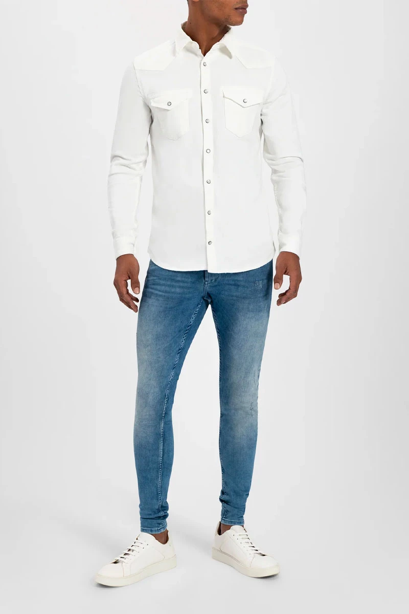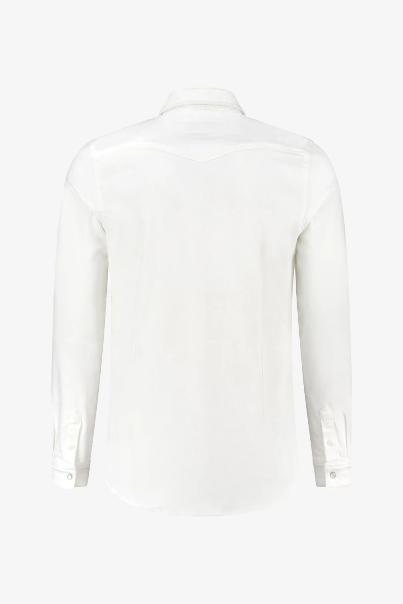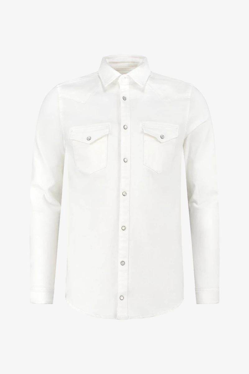 Deze casual denim blouse maakt je outfit stijlvol en chique. Het overshirt is gemaakt van katoen en sluit netjes aan om het lichaam. De blouse sluit door middel van pearl drukknopen en ook de zakjes op de borst hebben een drukknoop sluiting. Combineer de blouse op een van de Purewhite jeans om je outfit af te maken!